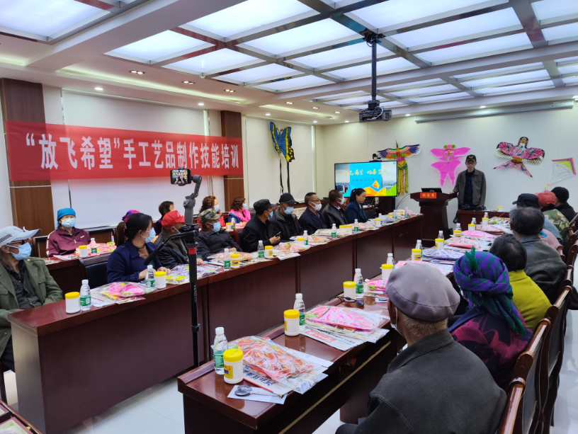 在5月15全國助殘日這一天,在饅頭營鄉(xiāng)會議室,希望小鎮(zhèn)項(xiàng)目組聯(lián)合張北縣殘聯(lián)、張北縣殘疾人溫馨家園組織了30多名當(dāng)?shù)亓羰乩先?、殘疾人村民開展了“放飛希望  手工藝品制作技能培訓(xùn)”,本次培訓(xùn)一共分為4期,首次培訓(xùn)主要內(nèi)容為“風(fēng)箏制作”,重點(diǎn)針對傳統(tǒng)風(fēng)箏及娛樂風(fēng)箏制作工藝進(jìn)行培訓(xùn),培訓(xùn)現(xiàn)場邀請了中國航空學(xué)會專家、張北縣政協(xié)委員新聯(lián)會會員,剪紙、風(fēng)箏制作專家樹兒灣小學(xué)“蘭學(xué)淵老師”進(jìn)行了專業(yè)講解及培訓(xùn),確保每一位學(xué)員掌握風(fēng)箏的制作工藝。